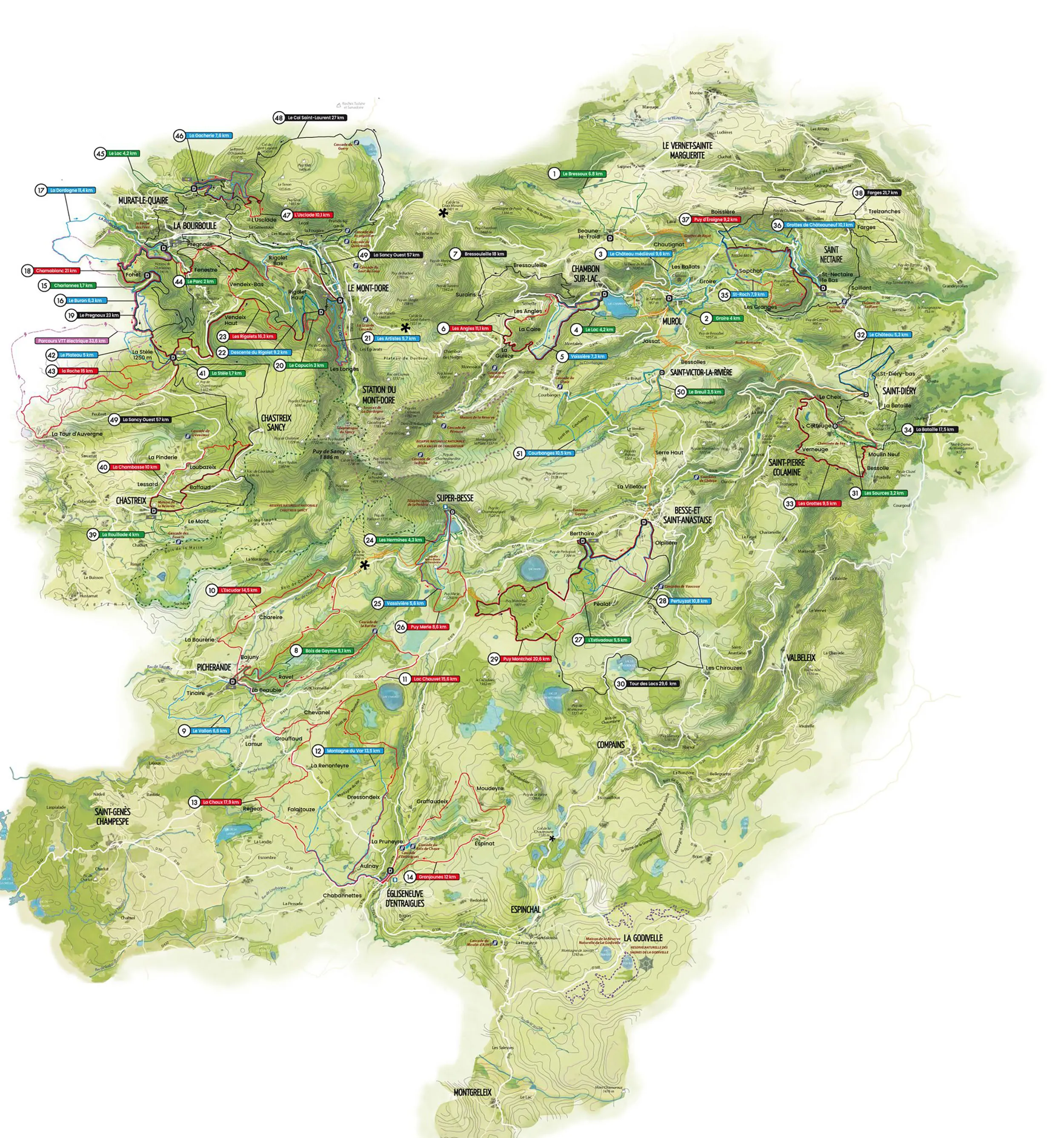 Présentation de l'incroyable terrain de jeux du Massif du Sancy. Explorez nos sentiers selon votre niveau et vos envies.